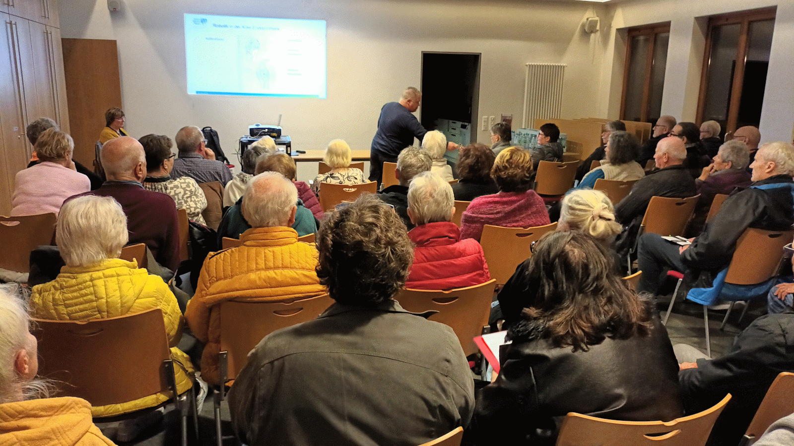 Ende Oktober 2025 lud die Kolpingsfamilie zu einem medizinischen und öffentlichen Infoabend zum Thema „Knie-Roboter“ ein, der auf eine große Resonanz stieß: Rund 65 Teilnehmende nahmen die Gelegenheit wahr, sich eintrittsfrei über moderne Möglichkeiten der Behandlung von Kniebeschwerden zu informieren.